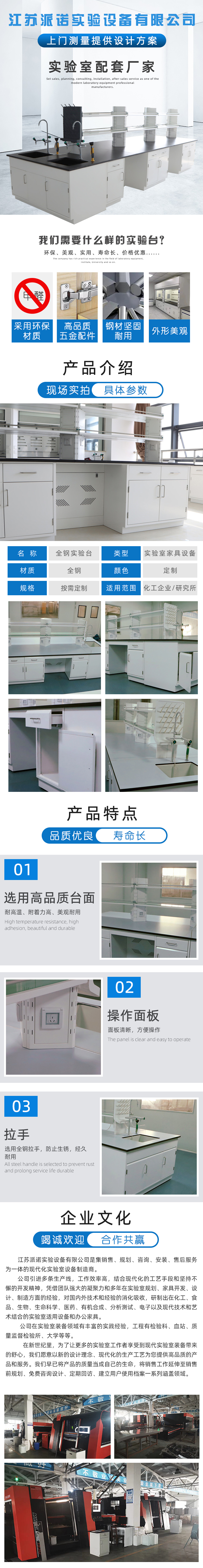 派诺 可定制 全钢操作台 承重耐酸碱理化板实验台